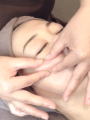 ヘッドマッサージで頭のコリをほぐし、顔筋マッサージで顔のコリをとります。